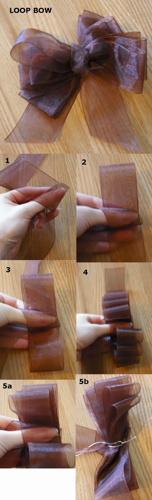 inches of ribbon. Hold the loop in the center. Make 9 more loops.